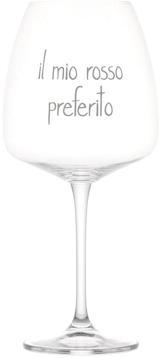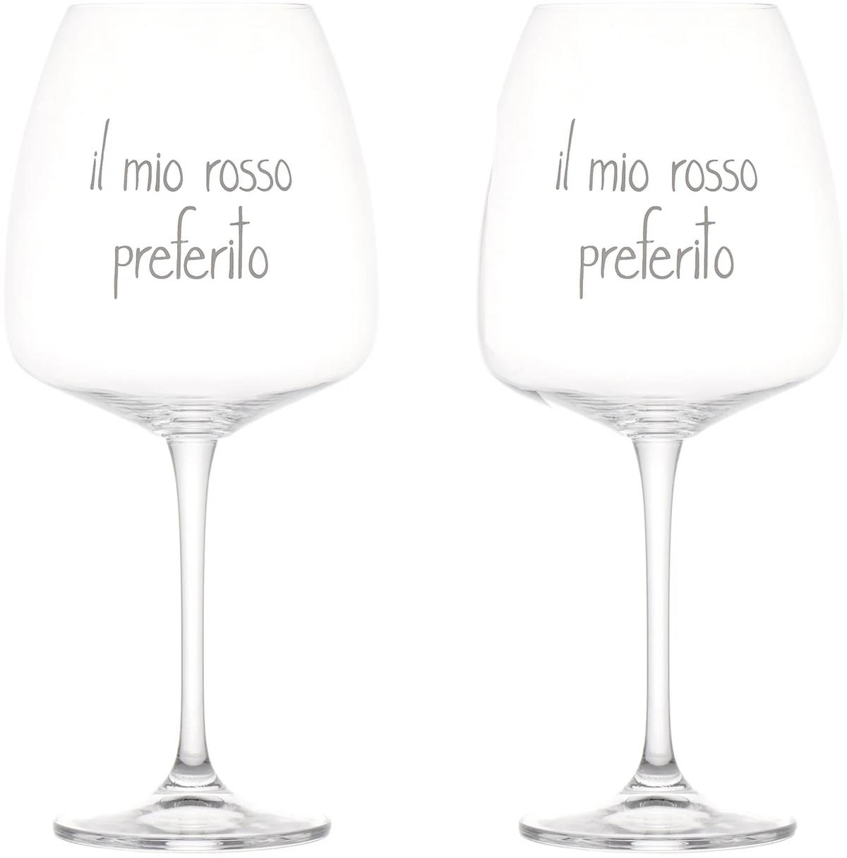 Bellissimo Set da 2 Calici da Vino con simpatico Decoro Scritta "Il mio Rosso Preferito" in colore bianco
