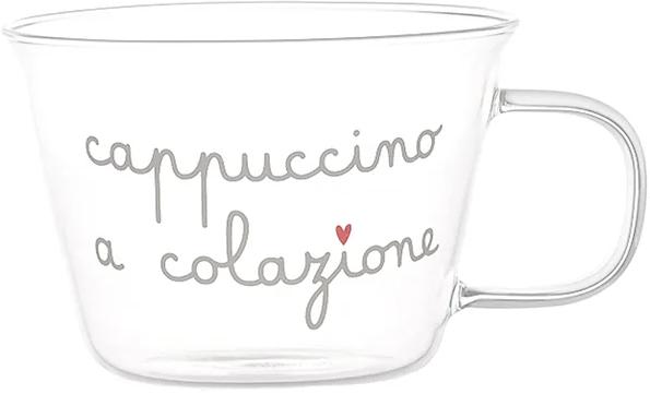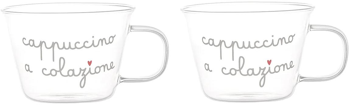 Set da 2 Tazze per la Colazione  Thè o Cappuccino con scritta/decoro "Cappuccino a colazione"